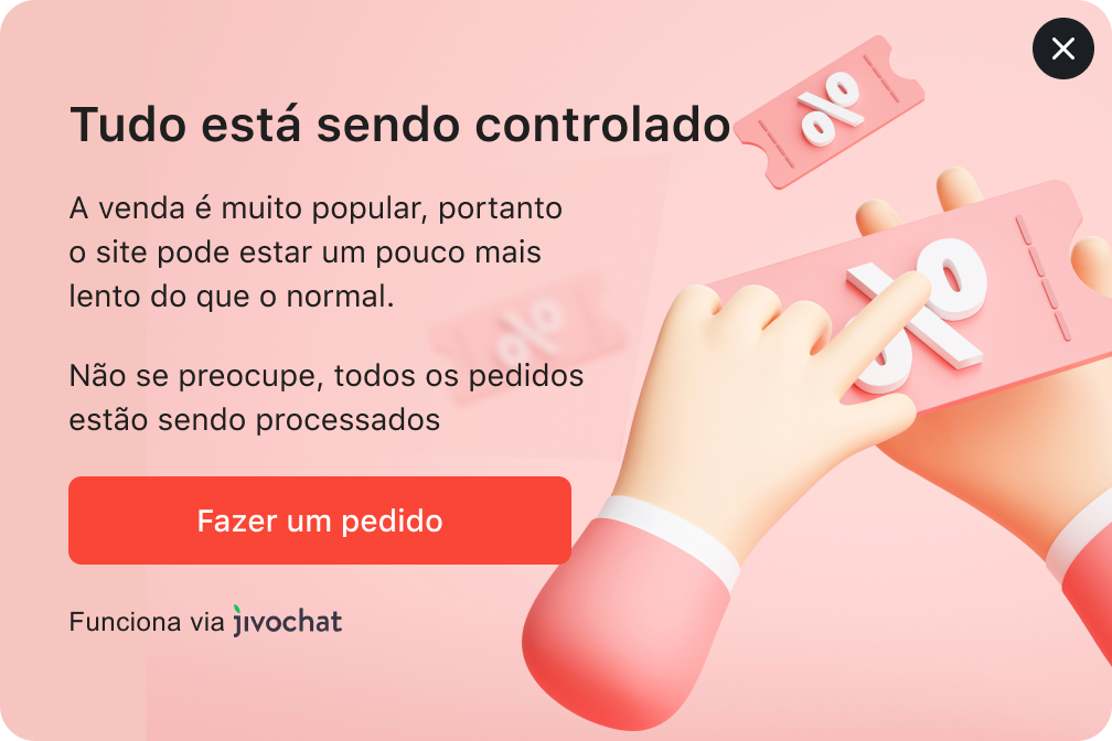 Seja proativo e rápido ao atualizar seus clientes sobre problemas técnicos, atrasos nas entregas ou mudanças na sua forma de fazer negócios. Use pop-ups para mostrar informações temporárias e importantes. O cliente apreciará seu cuidado e ficará com você por mais tempo.
