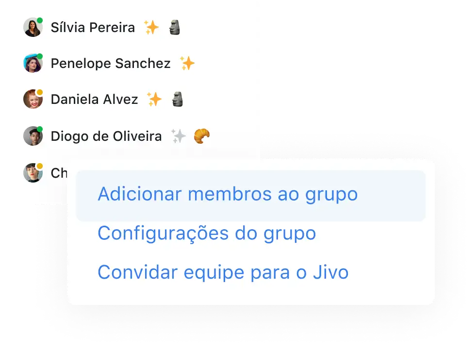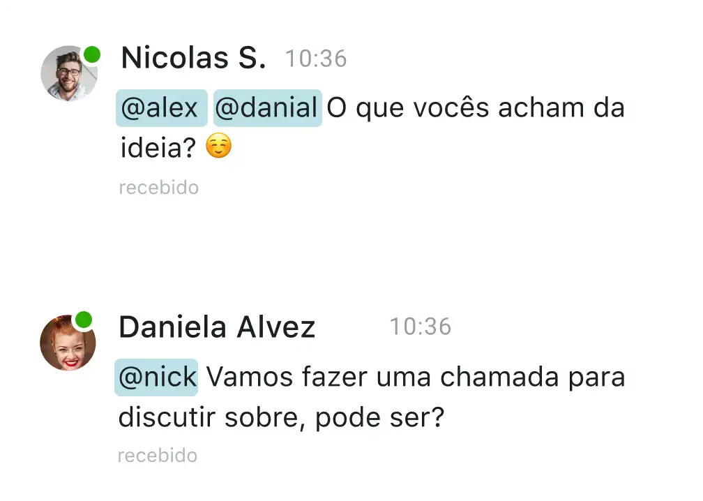 Mencione colegas de trabalho específicos, todos os membros de um grupo, ou apenas operadores online