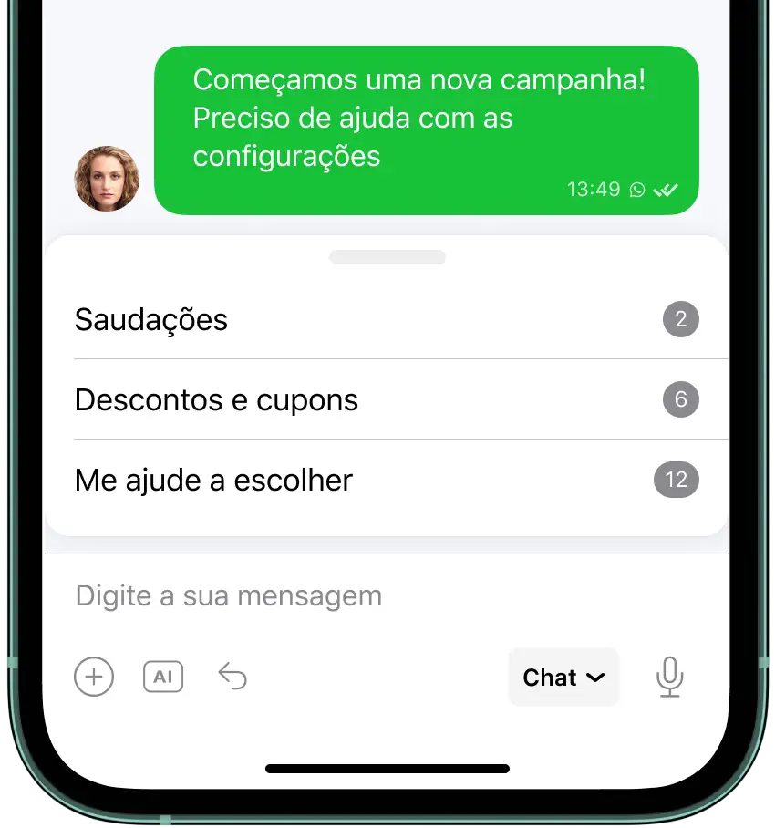 Responda instantâneamente e da melhor forma através de mensagens prontas, chat bots, e uma ferramenta omnicanal feita para tornar seu negócio mais eficiente